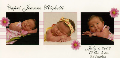 Finally and after a very hard labor our new little (or not so little) princess "Capri" is here!!!! She was born July 1st at 11:02 Pm and weighed 10 lbs and 4 oz (OUCH). She was also 22 inches long!